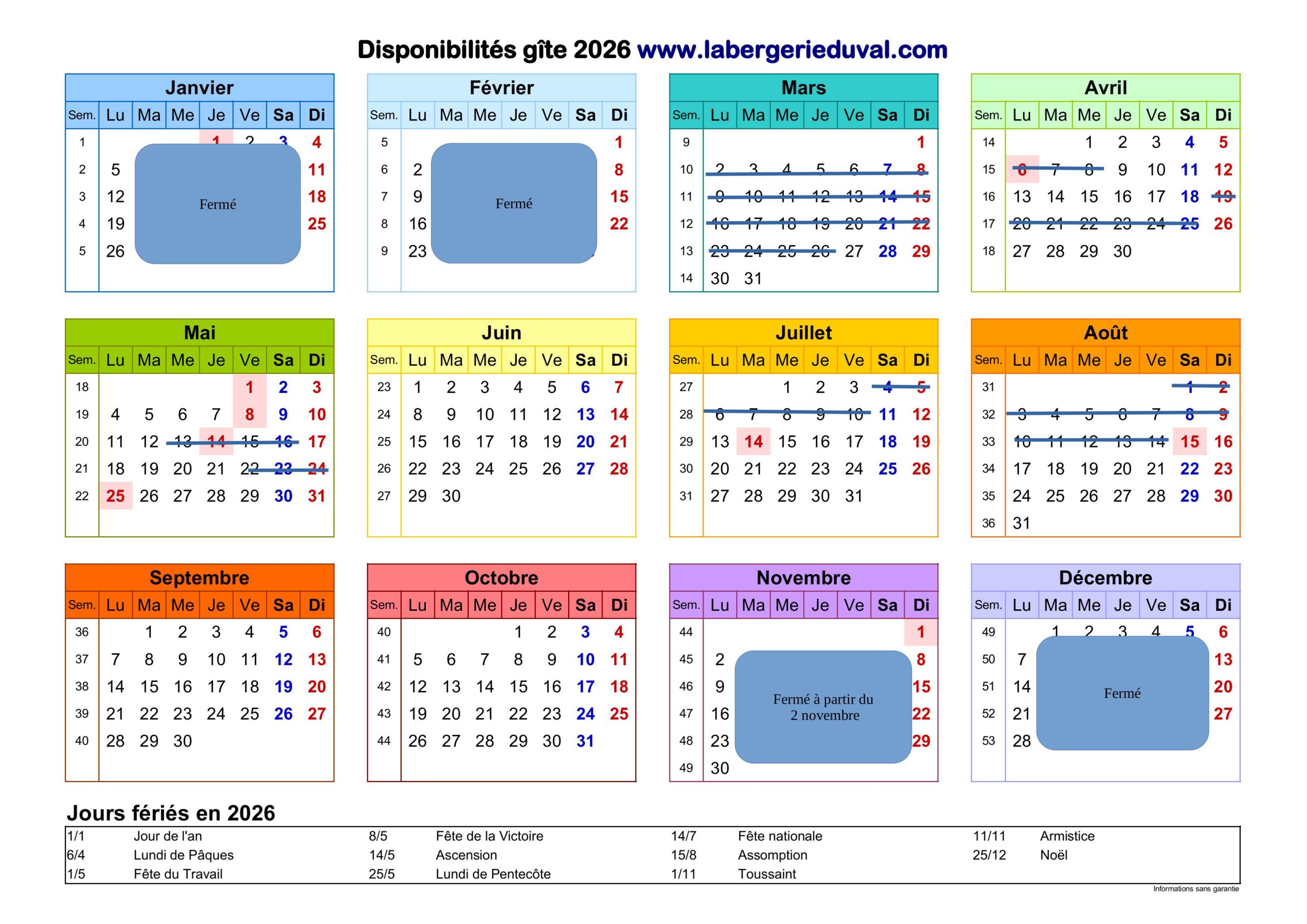 Semaine : 490€ (avril/mai/juin/septembre/octobre)
